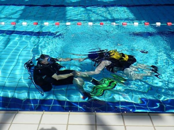 Tony Mallet (réfèrent Handisub des Hauts de France) , Dominique Duvet (EH1), Richard Thiou (EH1) et sans oublier Julie Neuquelman qui s'est occupée de l'accueil administratif des personnes en situation de Handicap (surtout la vérification des certificats médicaux obligatoires pour les baptêmes des personnes en situation d’handicap) ont accueilli un groupe issu de l'EPSM des Flandres pour leur faire découvrir le milieu subaquatique par un baptême de plongée. Cette matinée s'est terminée avec la délivrance des baptêmes de plongée.